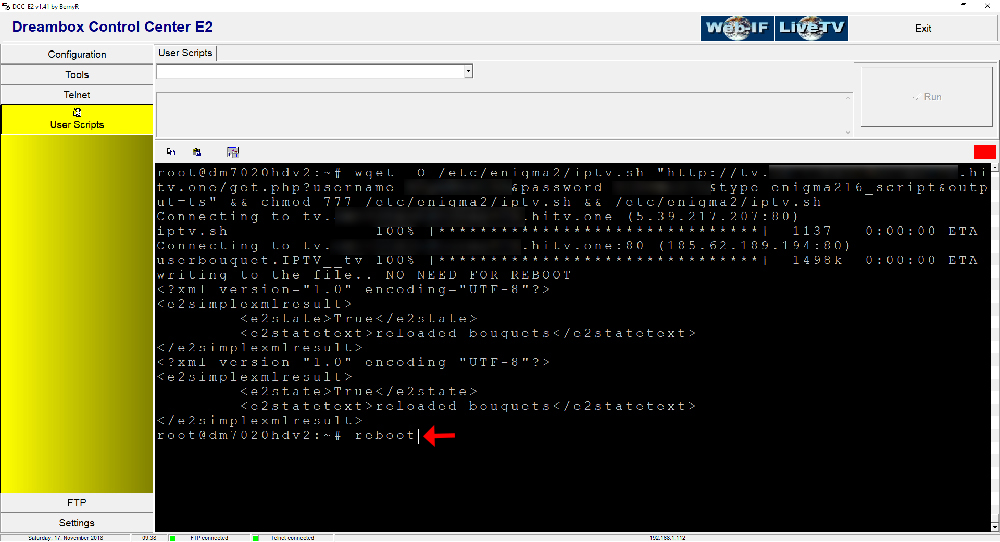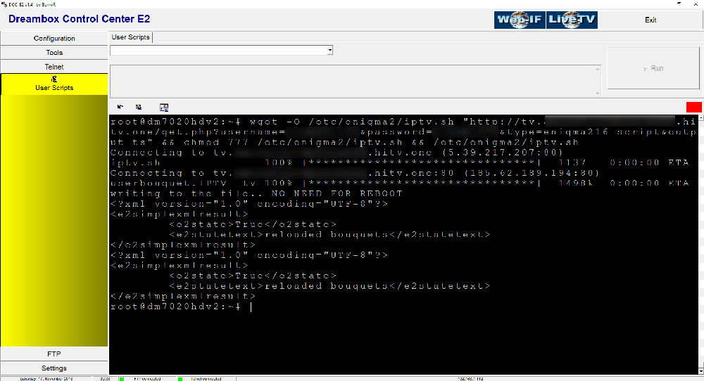 Step 3 : Once connected to your box via Dreambox Control Center, it`s time to execute the Autoscript command which should be provided by your IPTV provider. These scripts can be given in two versions:
