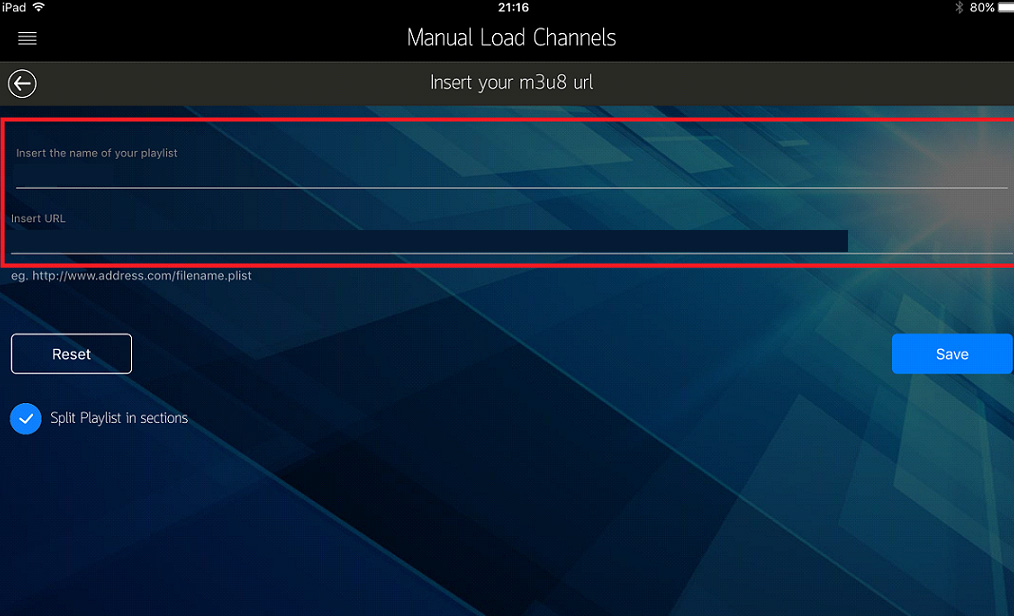 Add any name you want for example “IPTV Playlist” in the first box.