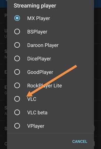 Note : we highly recommend that you download the VLC media player from the google play store and choose it as your streaming player to get advanced options.