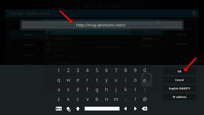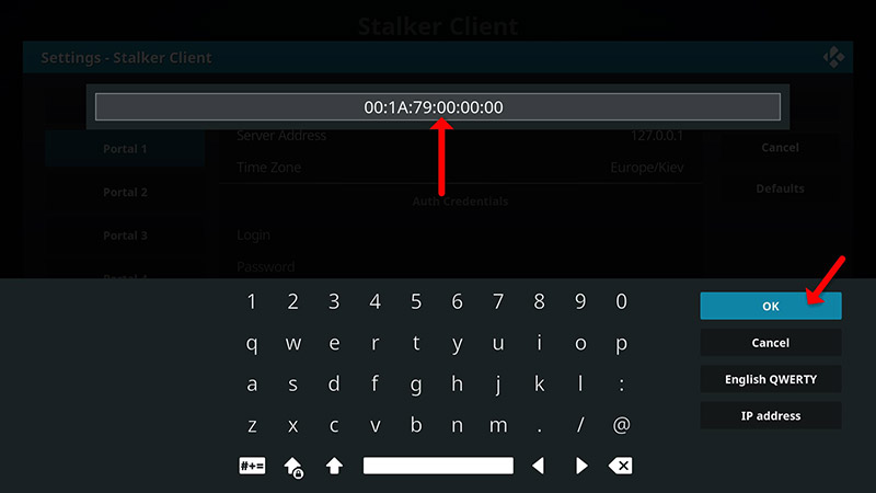 Step 8 : Select Portal 1 , and here add the Server address provided by your IPTV distributor and Mac Address of device . After entering the info accurately, select “ OK “