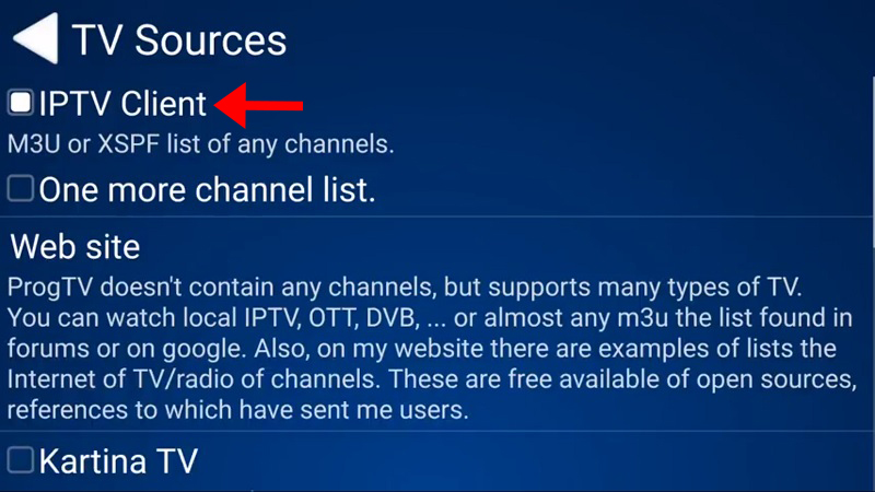 Step 2 : Now select “ IPTV Client ” as depicted via a red arrow in the below picture.