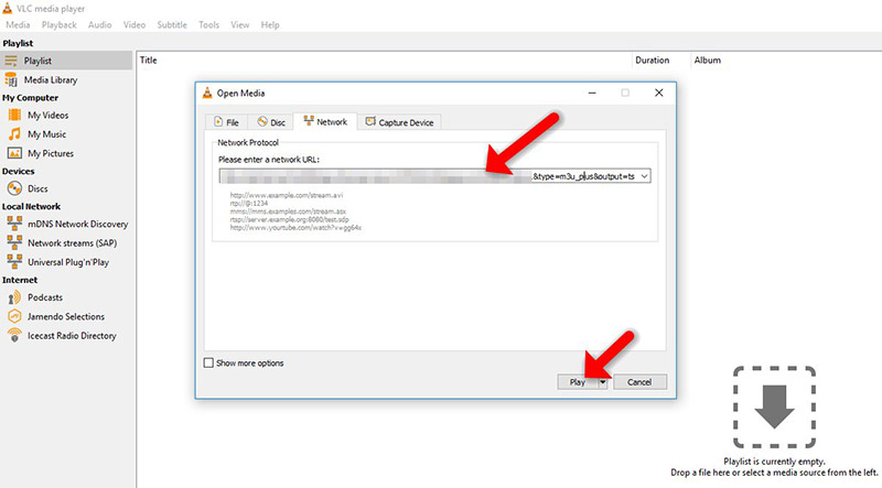 Step 3 : Enter the M3U URL provided by your IPTV distributor and press “ Play “.